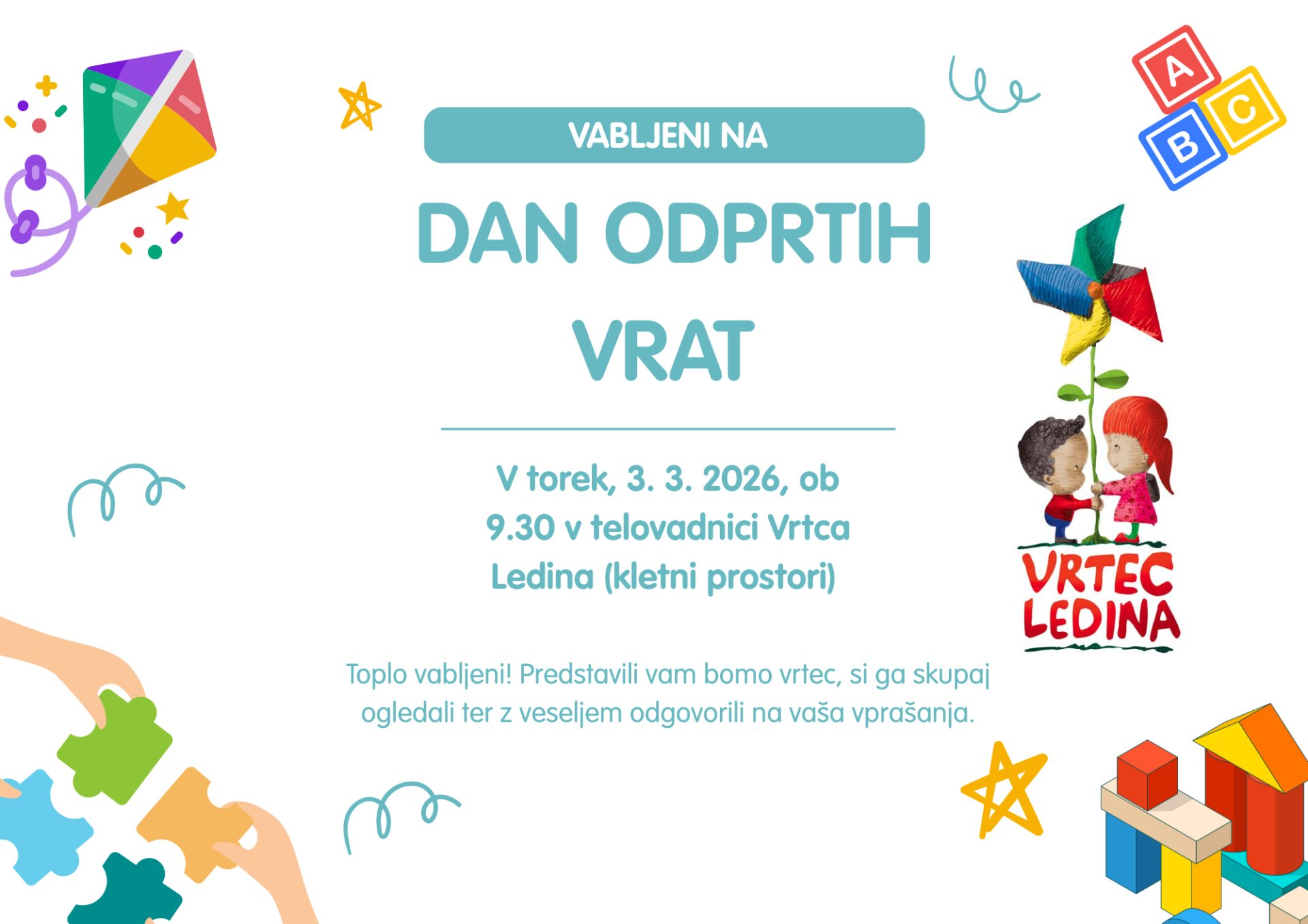 Vljudno vas vabimo na Dan odprtih vrat, ki bo v torek, 3. marca 2026, ob 9.30.